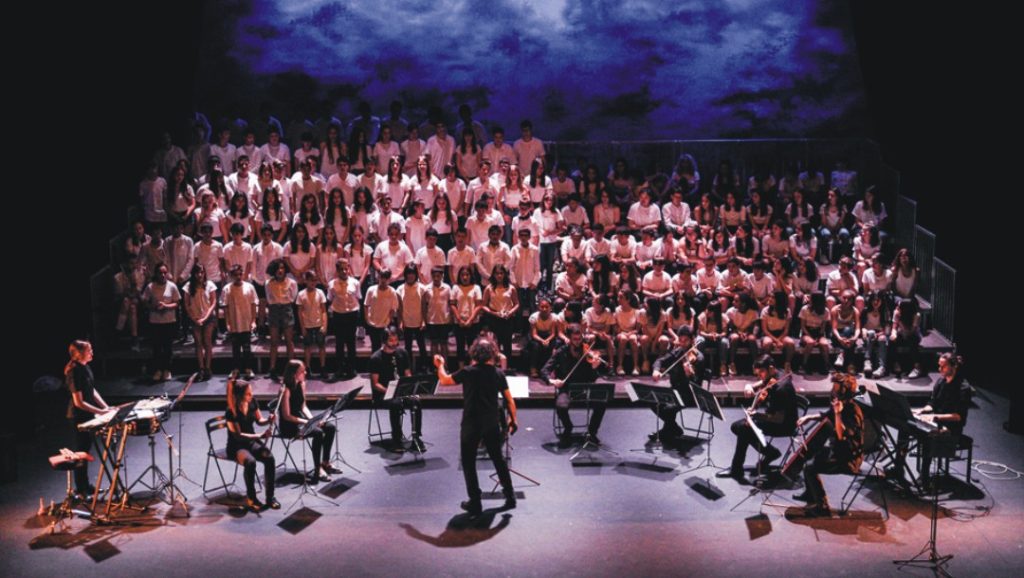 Amb una obra plena d’elements musicals molt diversos i que atén especialment els canvis de veu en els nois, els alumnes descobriran l’enorme capacitat expressiva de la pròpia veu i la força emocional del cant coral, compartint escenari amb centenars d’alumnes de diversos centres educatius.